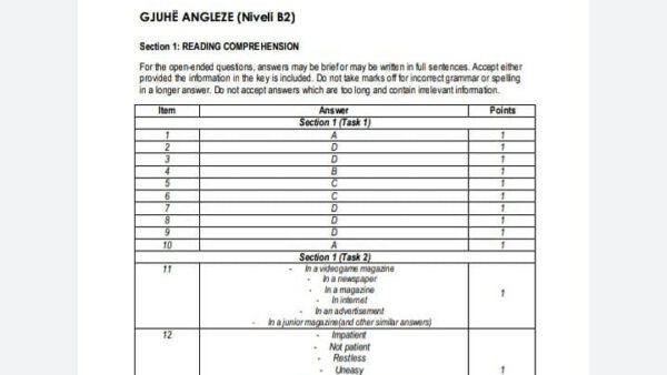 Më poshtë keni linkun që ju dërgon tek skemat e vlerësimit për gjuhën Angleze të Maturës Shtetërore 2019. Skema e…