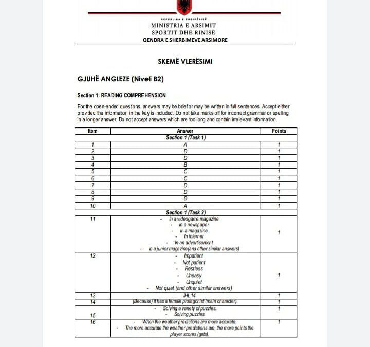 Skema e Gjuhës Angleze, Varianti B: https://www.portalistudentor.al/wp-content/uploads/2019/06/English-Varianti-B.pdf