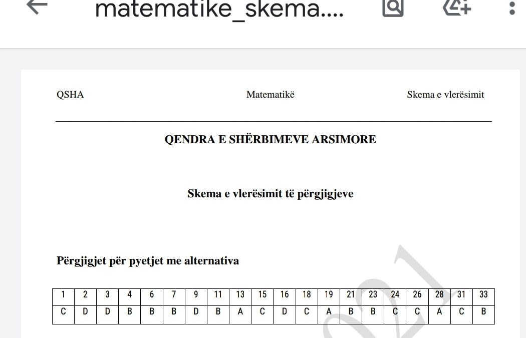 Kimi, skemë vlerësimi – Varianti A: https://www.portalistudentor.al/wp-content/uploads/2019/06/kimi_skema-1.pdf
